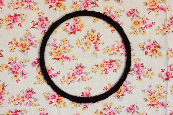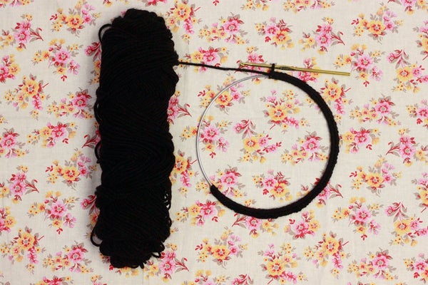 실과 코바늘로 고리 주위를 코바늘로 뜨개질하세요.