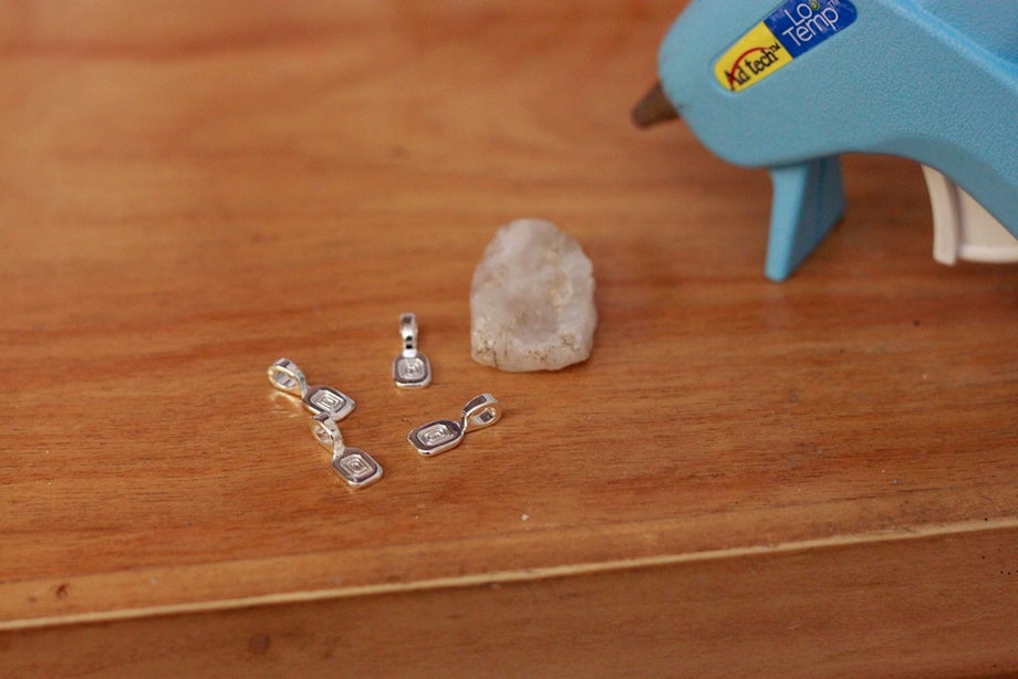 이제 보석 보석을 잡고 평평한 바위 뒷면에 붙입니다.