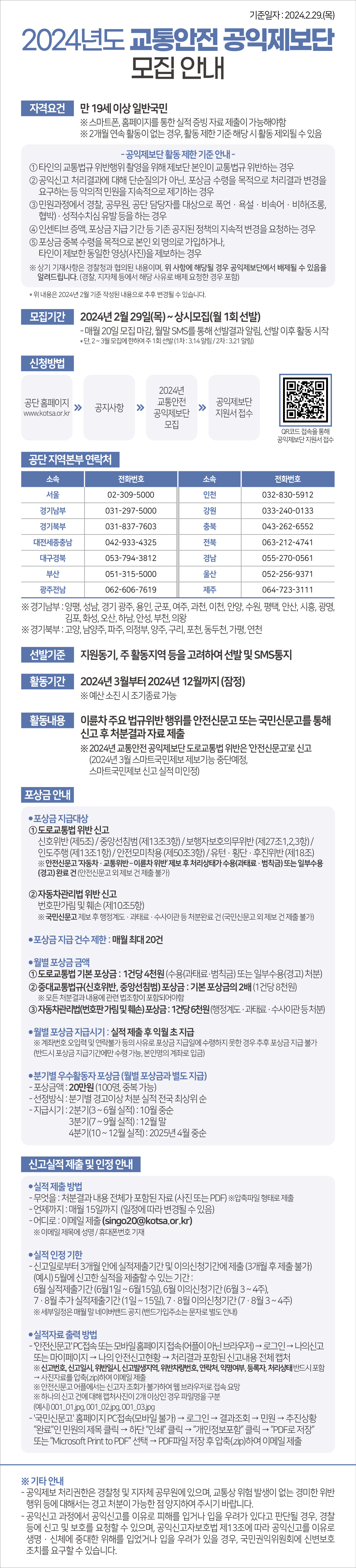2024년 교통안전 공익제보단을 모집하오니 많은 지원 바랍니다.