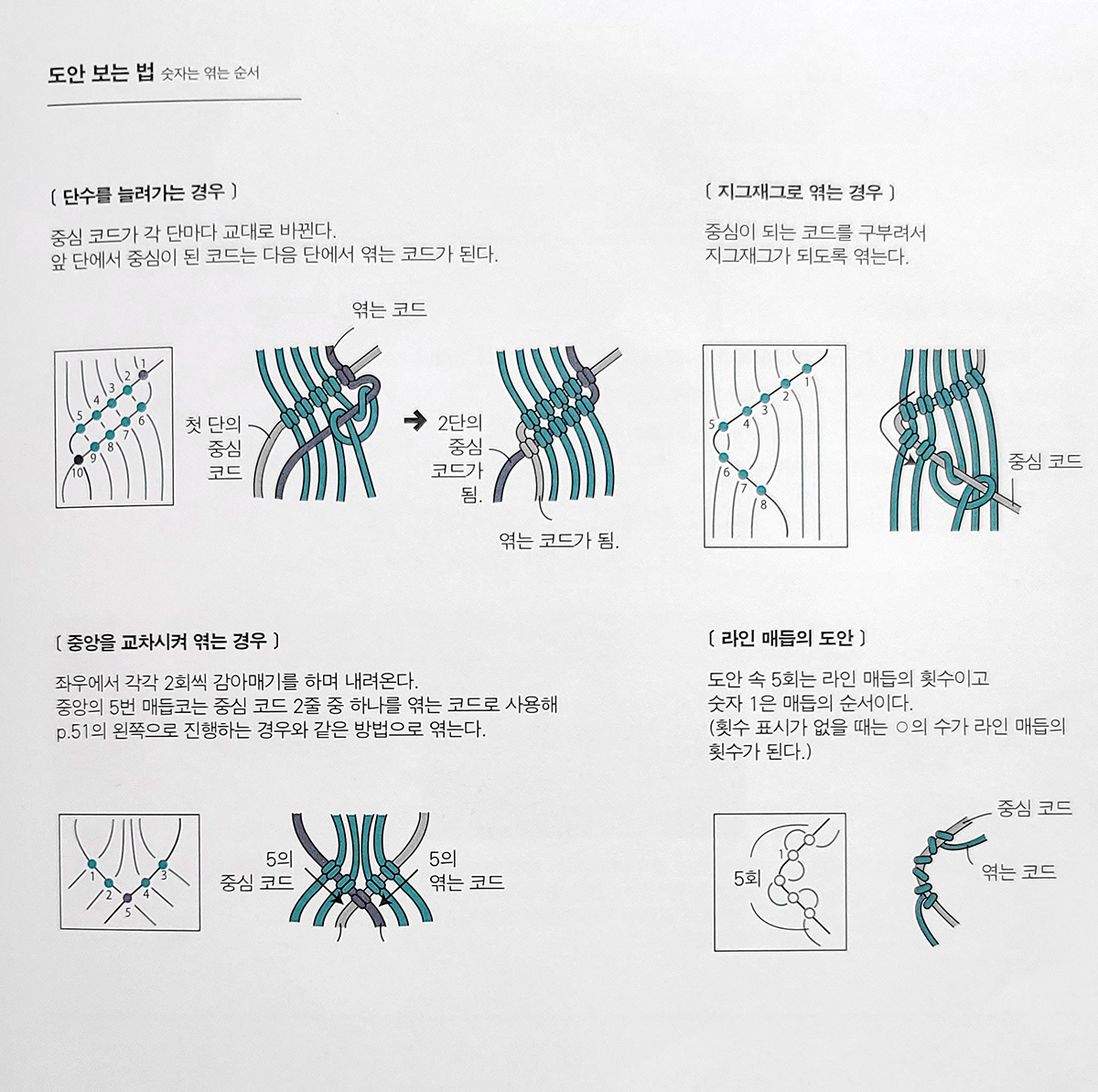 | 마크라메 - 한매듭 랩핑매듭 둥근네줄접기 왼/오레이스매듭 펑매듭 나선매듭 (0) | 2024.04.08 |