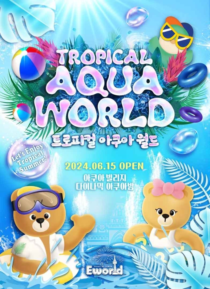 이번 <이월드 트로피컬 아쿠아월드>에서는 낮에는 하와이안 휴양존으로 떠나는 '아쿠아빌리지'와 밤에 흠뻑 젖을 수 있는 EDM 워터파티인 '다이나믹 아쿠아밤'을 선보인다. 올해 새롭게 선보이는
