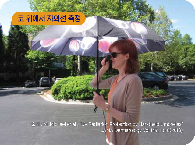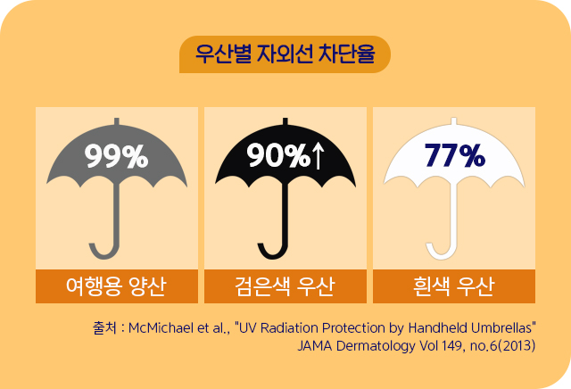 실험을 진행한 피부과 전문의 맥마이클 박사는 검은색 우산이 더 많은 자외선을 흡수해 피부에 닿는 양이 적다고 설명했다.
