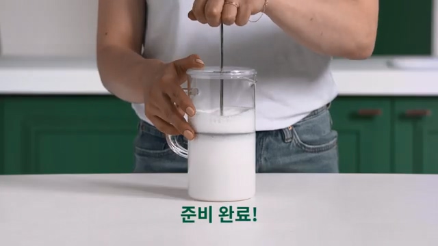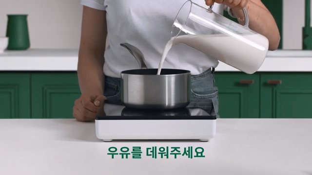 우유의 부피가 두 배까지 될 수 있기 때문에 공간을 남겨두세요.