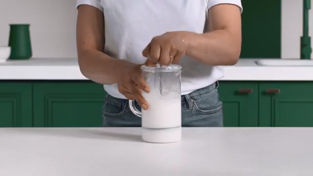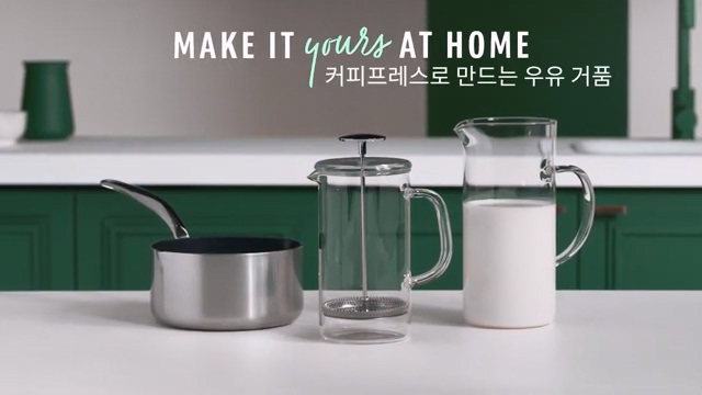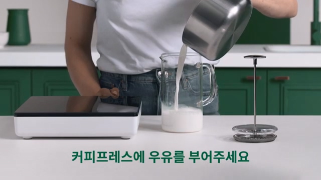 커피프레스에 따뜻한 우유를 부어주세요.