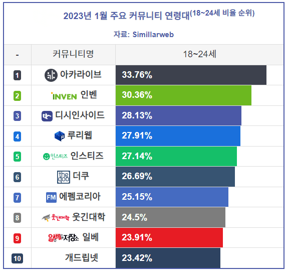 아카라이브는 국내 사이트 중 10대 20대 남성 접속률 1위를 차지할 정도이며