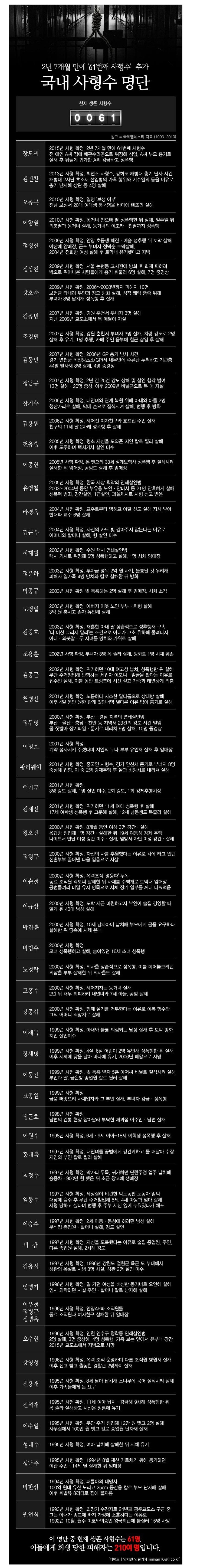 2015년 사형 확정. 2년 7개월 만에 61번째 사형수