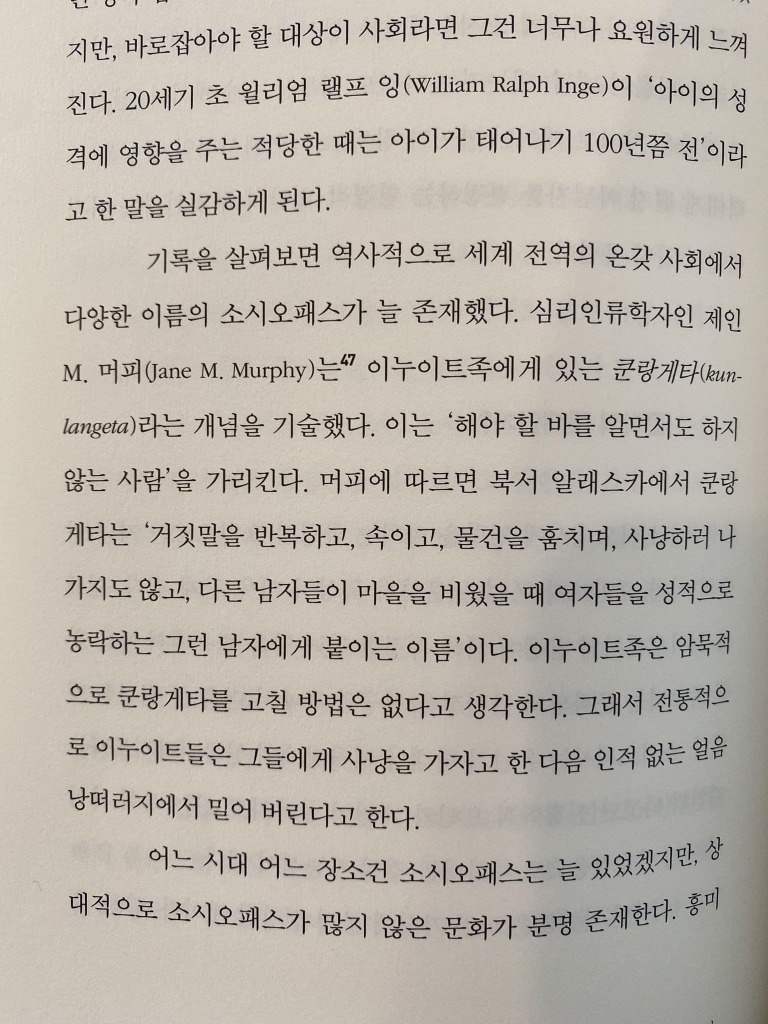 이들은 소시오패스는 고칠 수 없는 성향이라고 생각하고 부족 내에 소시오패스로 보이는 사람이 발견되면 그냥 인적이 없는 낭떠러지에서 밀어버렸다고 합니다.