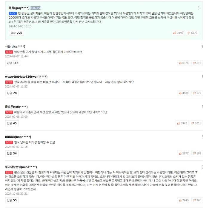 웹툰 <이세계 퐁퐁남> 1화에 달린 댓글들. 네이버웹툰 화면 갈무리