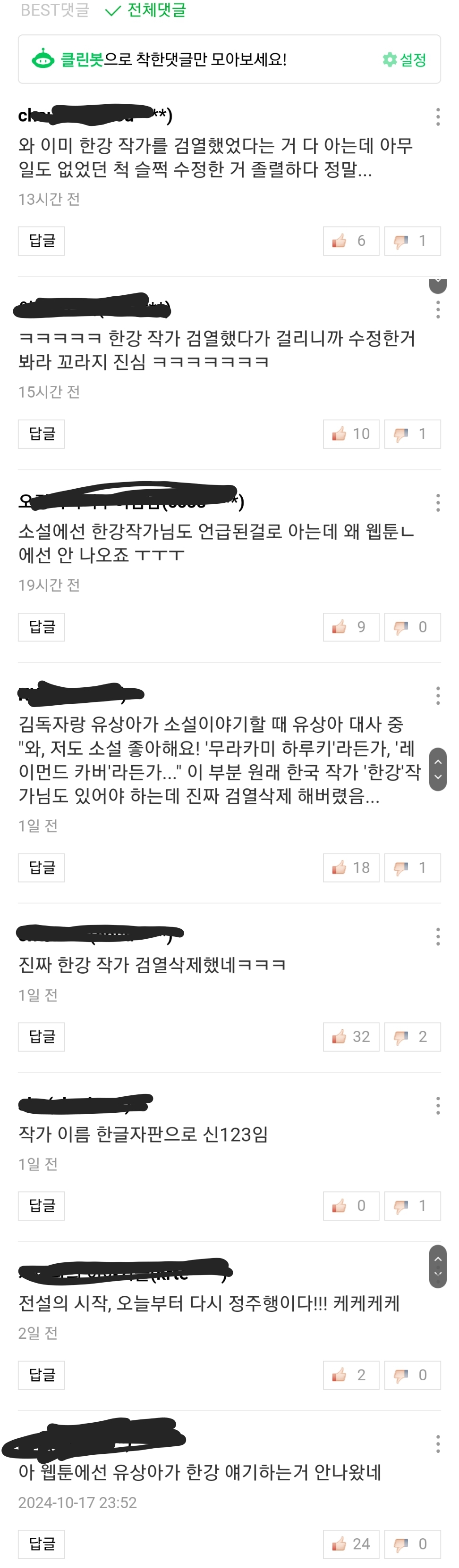 이슈/유머 - 전독시 네이버 웹툰 해외판에선 언급되었던 한강작가