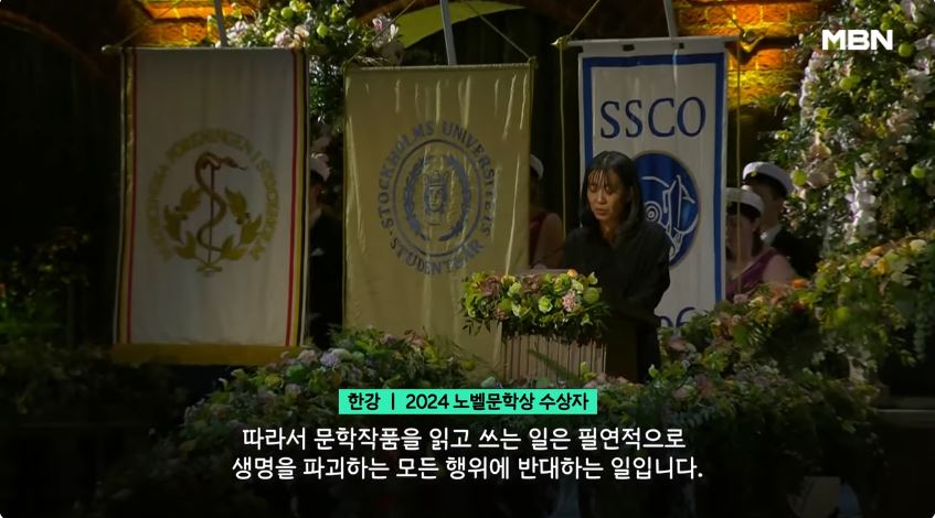 올해 노벨문학상 수상자인 한강 작가는 "문학을 읽고 쓰는 작업은 생명을 파괴하는 모든 행위에 반대한다는 것"이라고 역설했습니다.