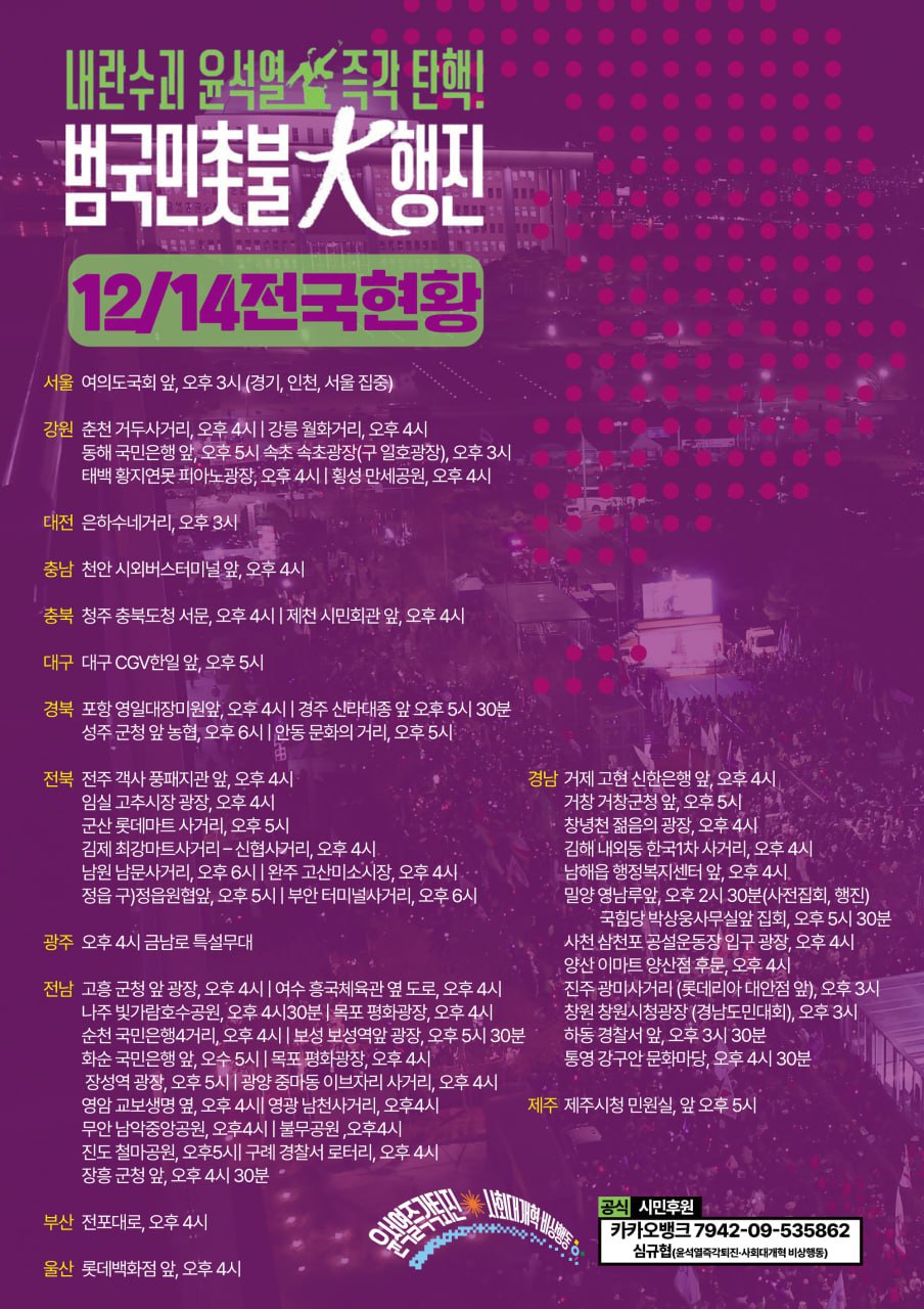 | 🕯️ 윤석열 탄핵안 가결! 🕯️ (1) | 2024.12.14 |