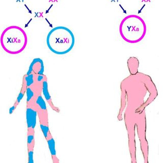 세포에서 X 염색체는 하나만 작동함. 그래서 XX인 여성은 하나를 꺼버리는데, 이건 배아때 세포별로 정해져서, 그 세포가 분열해도 절대 바뀌지 않음