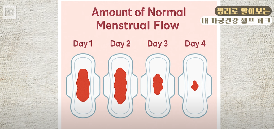 : 30cc~80cc 정상 범위. 생리양이 가장 많은 2일 째 기준 중형 패드 절반 이상 적신 상태로 하루 3~4장 정도 사용하는 정도가 평균.