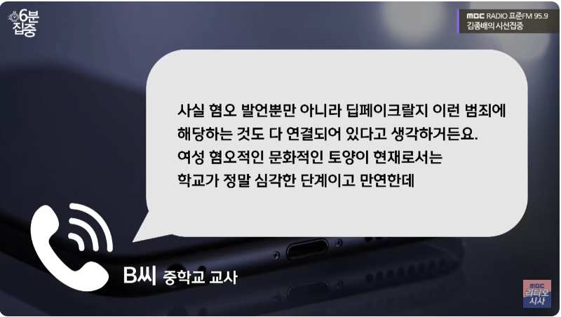 ... 여성 혐오적인 그런 문화적인 토양이 현재로서는 학교에 너무 정말 심각한 단계이고 만연한데