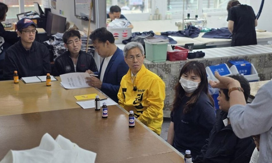 권 후보는 봉제 노동자들을 만난 자리에서 “근로기준법을 준수해도 봉제공들은 보호받지 못한다. 5인 미만 사업장이기 때문”이라며 “이 낡디낡은 근로기준법을 노동기준법으로 바꾸고 모든 일하는 사람을 위한 노동법으로 만드는 것이 과제”라고 말했다.