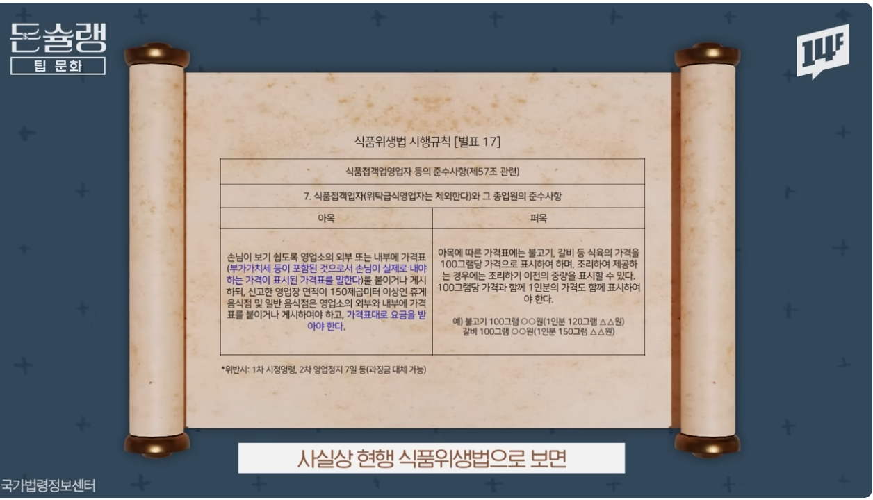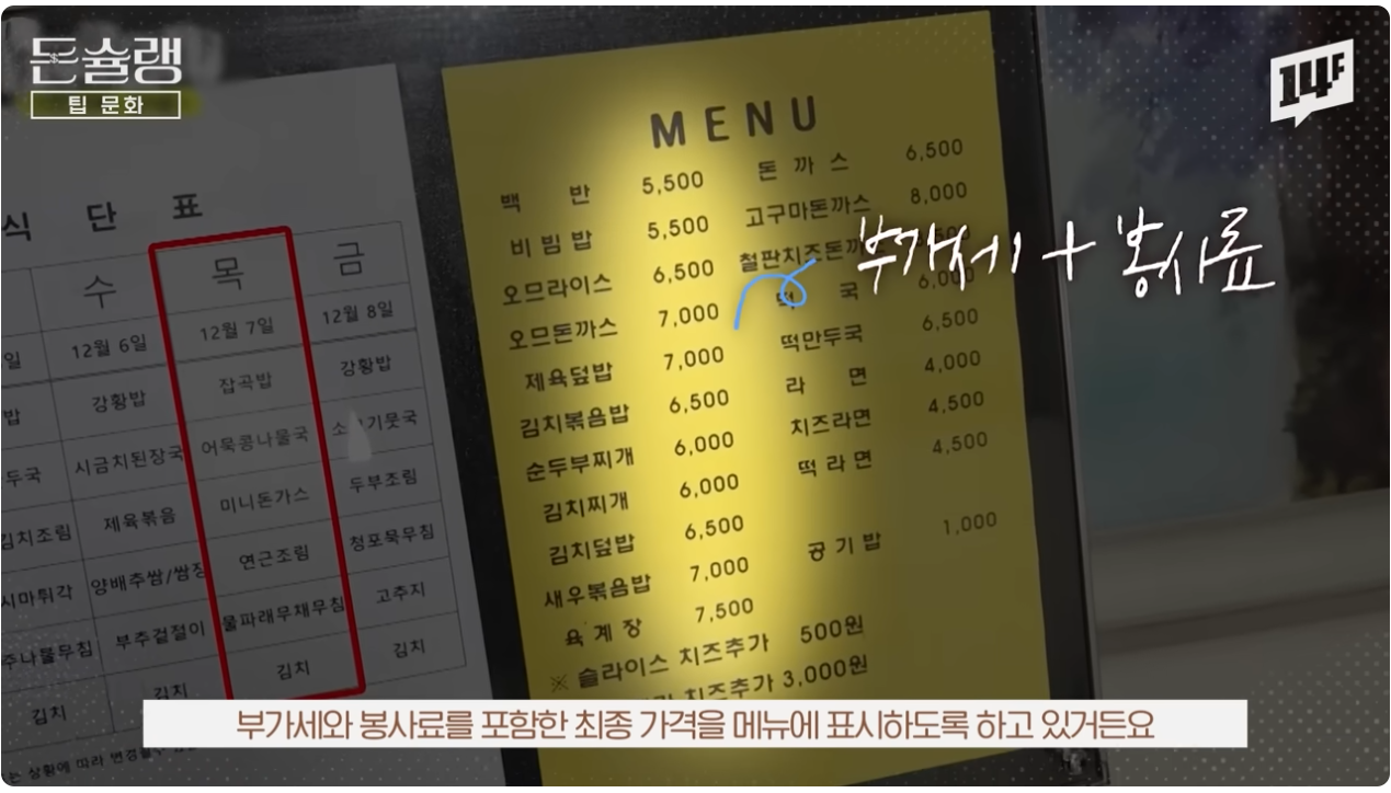 부가세와 봉사료를 포함한 최종 가격을 메뉴에 표시하도록 하고 있거든요.