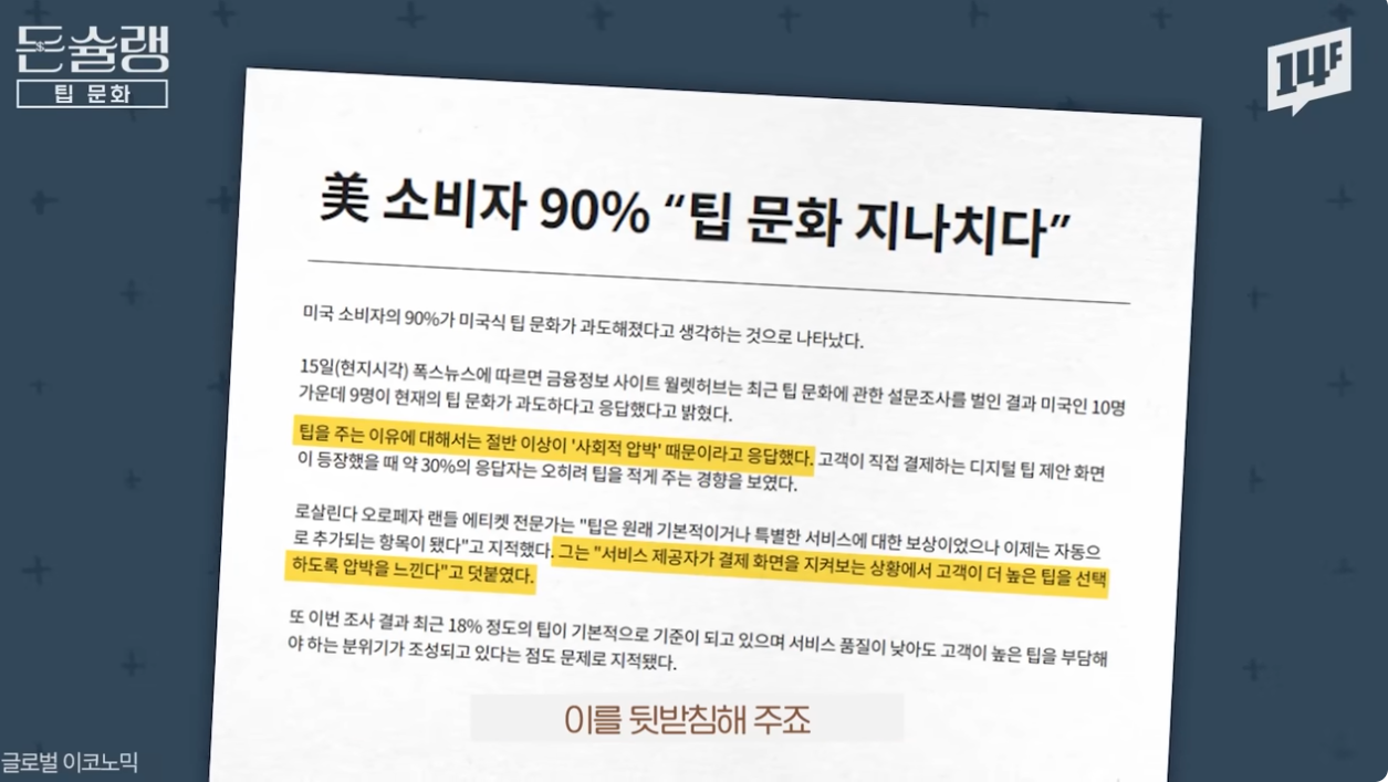 그럼에도 불구하고 사라지지 않는 팁 문화.