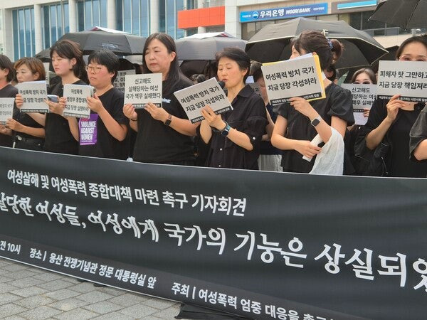 이에 한국여성의전화 등 여성단체 33곳이 모인 '여성폭력 엄중 대응을 촉구하는 시민사회 일동'은 31일 오전 용산 대통령실 앞에서 기자회견을 열고 "반복되는 여성 살해는 명백한 국가와 제도의 실패"라며 정부에 '여성 폭력 종합대책' 마련을 촉구했다.