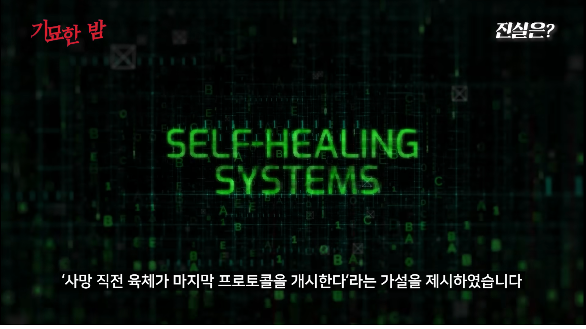 '사망 직전 육체가 마지막 프로토콜을 개시한다' Self-healing systems 라는 가설을 제시했다.