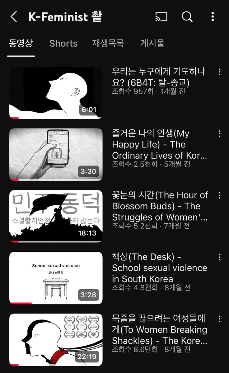 탈코르셋, 교내 성희롱, 탈종교 등 각종 페미니즘 영상 다수🤭