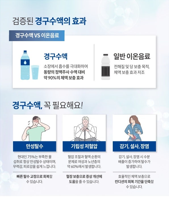 링겔맞아야하는 대부분의 상황에서 경구수액을 마시는걸로 포도당주사를 어느정도 대체할수있음