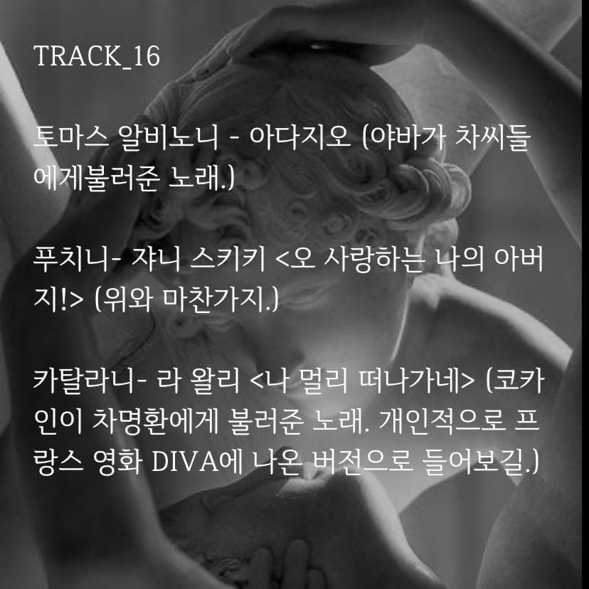 HEALER TRACK LIST (힐러 트랙 리스트 Image ver.) HEALER TRACK LIST (힐러 트랙 리스트 Text ver.) Intro 01_쫓기는 자 카치니- 아베 마리아 (야바/코카인 둘다 각각 한번씩 부름) 김현철- 크리스마스에는 축복을 (